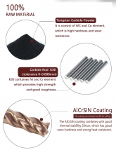 6 strength: imported carbide rod with 0.5 μm and imported AlCrSiN coating for high wear-resistance and heat-resistance;